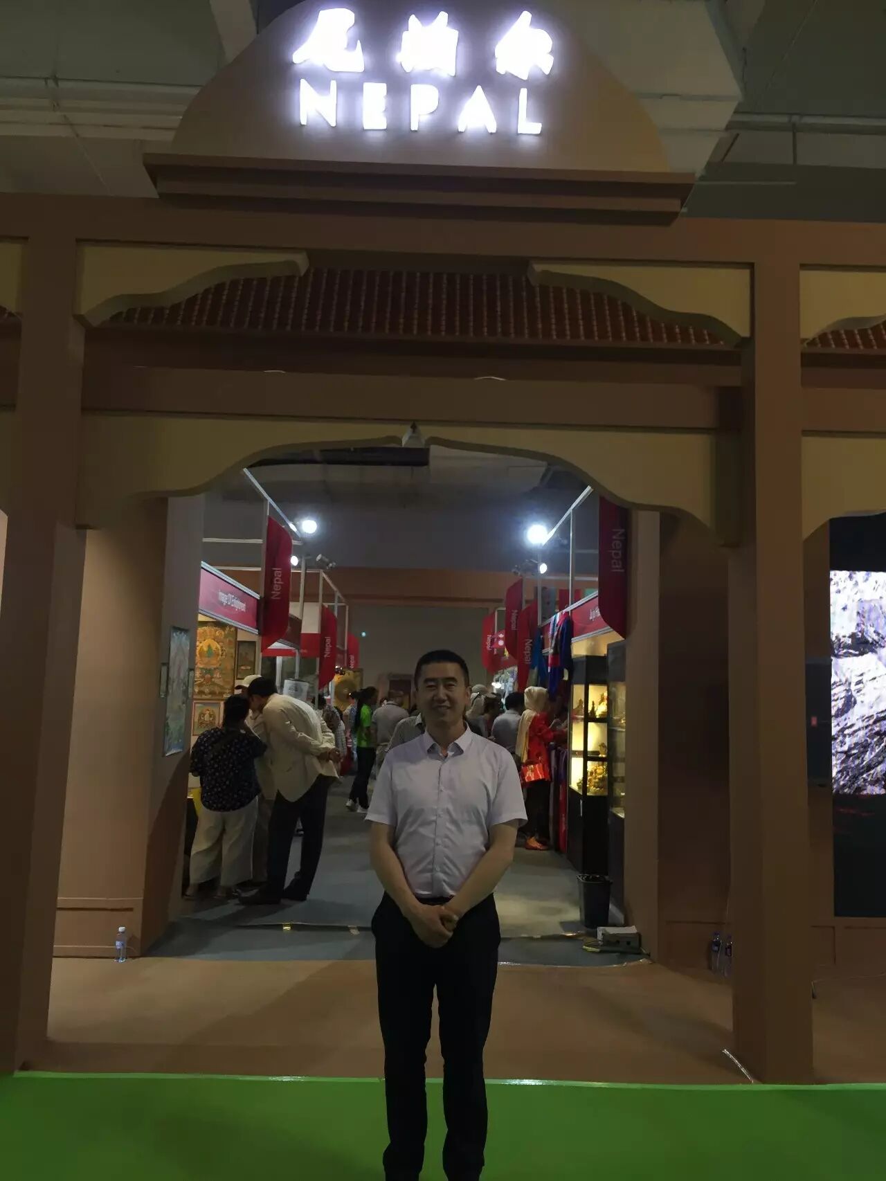 Mr. Zhang Shiping, general manager of Musa logistics visiting the 23rd Fair. 参访第23届兰洽会尼泊尔主宾国馆。(苹果手机的拍摄效果确实比国产手机差了一大截,凑活着看吧,主要看尼泊尔。)