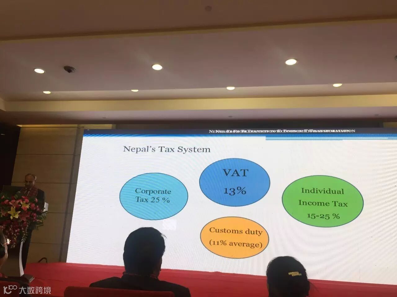 Nepal ambassador to the PRC Leela Mani Paudyal introducing Nepal economic policy. 大使在演讲中介绍说,尼泊尔平均关税11%, 什么事一平均就感觉不好了。