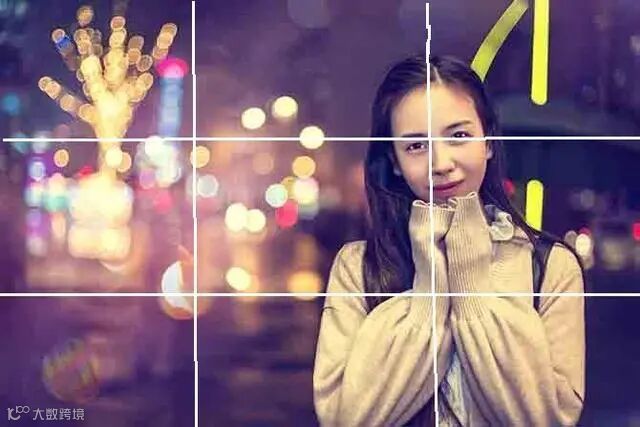 三分法构图实际上仅仅是"黄金分割"的简化版,又称九宫格构图,我们经常可以在相机内置的参考线中看到。三分法构图可分为横向三分法和纵向三分法两种。在拍摄人像时,将画面横、竖平均分为三等分,每一条分割线上都可放置人物主体躯干,而将人物置于其4个交汇点中的一个点上,则能够更加鲜明地突出人物主体。