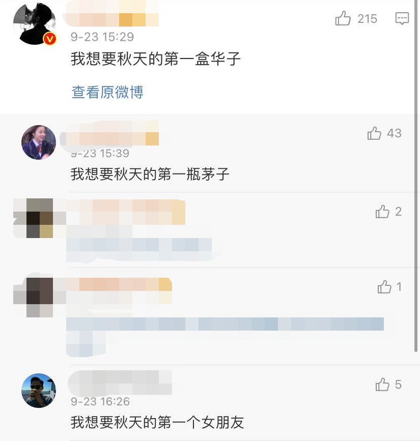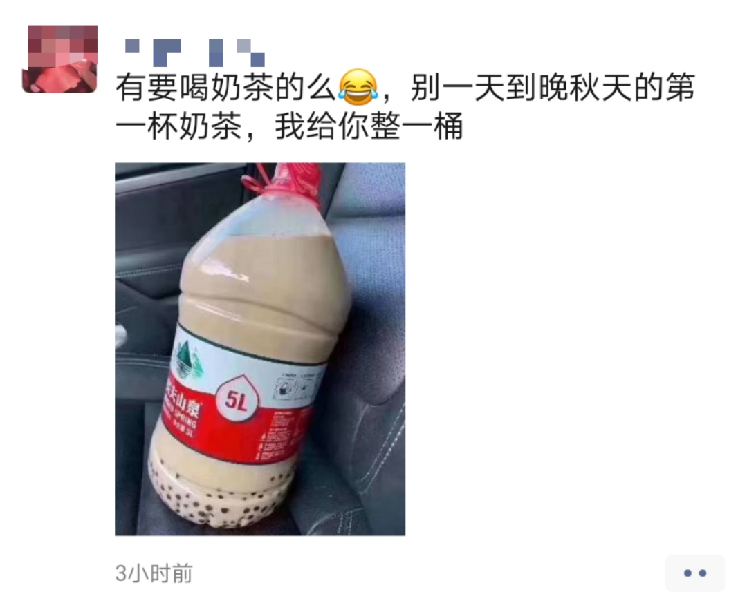 有人说:“今年的秋天比以往来的早一些,所以今年这个秋天的第一杯奶茶安排一下。”