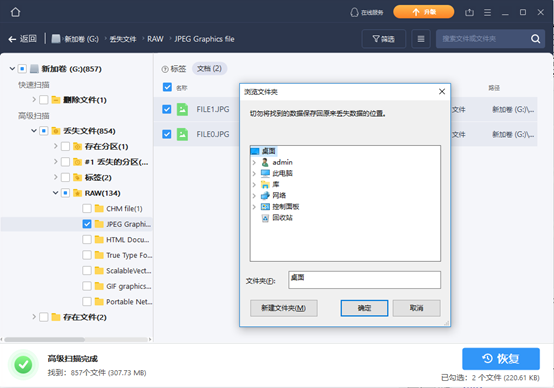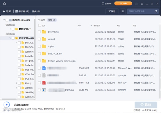 软件开始扫描磁盘。快速扫描结束,「已删除的文件」分类下数据已完全查找到,其中涵盖所有可以还原的删除文件。