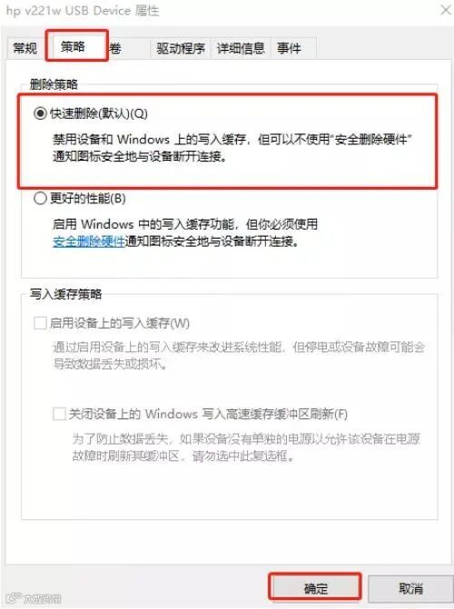 3.在【策略】选项下将模式改为【快速删除(默认)】并确定即可。