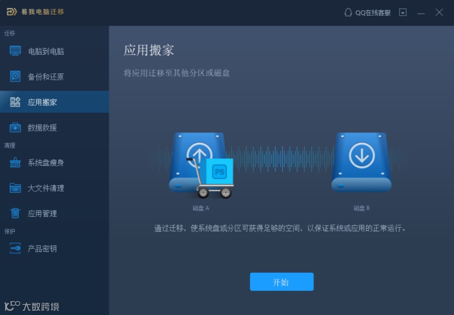 这里推荐大家可以使用易我电脑迁移,它支持两台电脑之间、同一台电脑硬盘之间互相传输应用程序、文件、账户等,其特有的“应用搬家”功能,可以很轻松地将C盘的软件迁移到其它盘。
