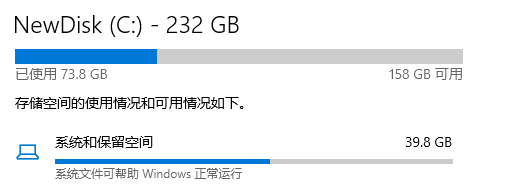 一般来说,系统文件约占10-30G,如果电脑需要进行系统更新的话,占用的空间会更大。更新的补丁和大版本会覆盖在原有的系统基础上,也就是说只有新系统安装成功后,旧系统才会被移除,并且每次在更新后都会残留一些文件在C盘里。