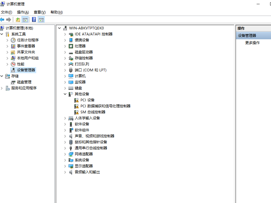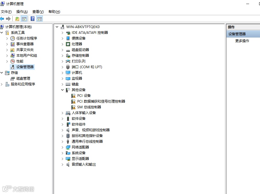 点击【管理】,找到右侧栏的【设备管理器】,查看电脑的USB驱动有没有出现问题,如果有出现黄色叹号,说明需要更新USB驱动了。