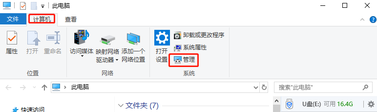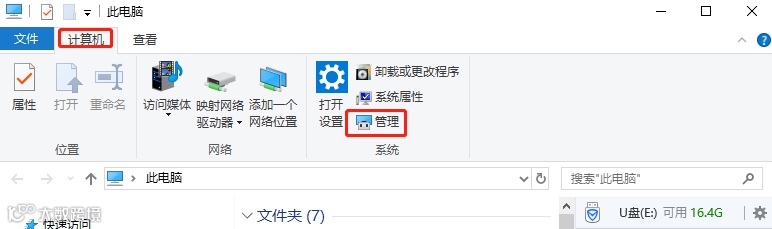 U盘无法识别还有可能是电脑的原因,这时候直接进入计算机【管理】中查看;