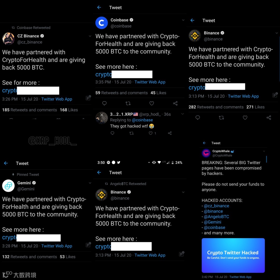 此次黑客攻击始于区块链行业,如Gemini交易所、Coinbase交易所、币安交易所的CEO赵长鹏、Tron的CEO孙宇晨,区块链媒体Coindesk,均受到攻击并发布相关消息。
