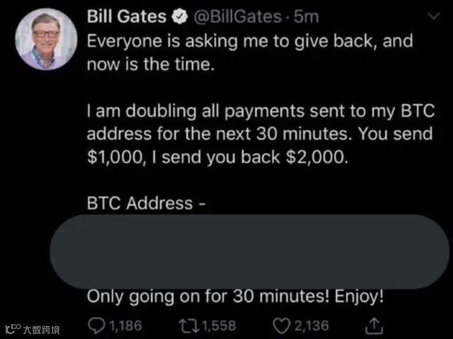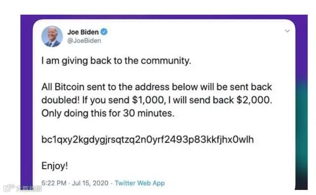 黑客攻击了著名社交网站推特,一个大家都不怎么相信就连美国前总统账户也会被黑的一个网站。利用了民众对推特的信任以及名人的公信力,让大家认为这次活动是真的。