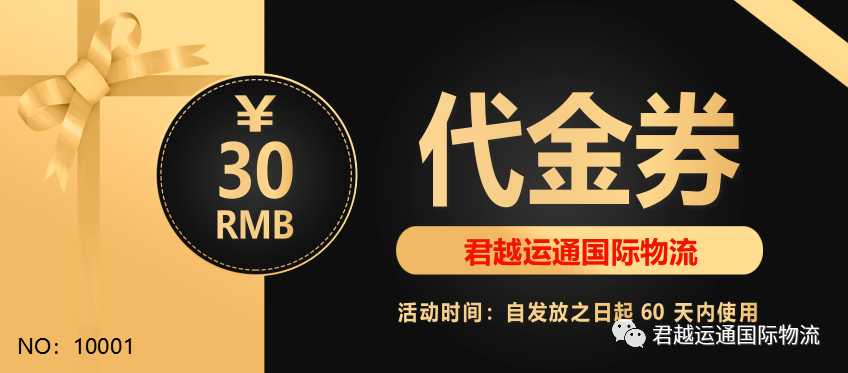 君越运通为每一位妈妈送上一份小小心意,空运20人民币代金券,海运30人民币代金券,领取时间5.13-5.20,代金券使用有效期60天内,活动细则请咨询业务经理。