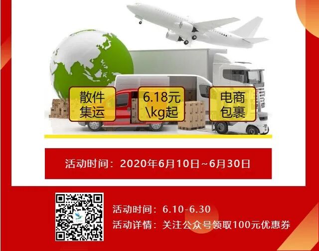 截止到6月30日前,前往飞鸟速运公众号自助下单即可领取100元优惠券;中国~马来西亚专线的电商包裹小件等低至6.18元/kg,欲寄从速。