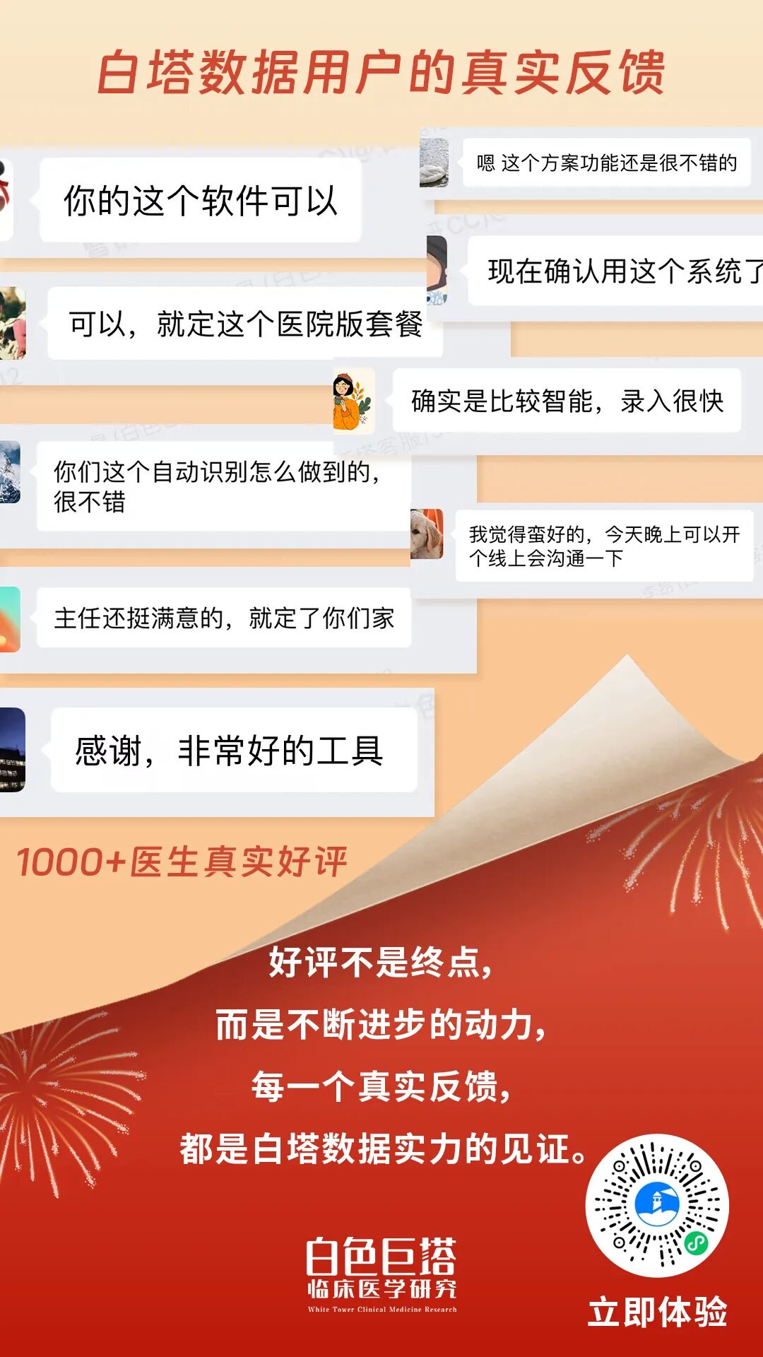 2023年白塔数据®服务了20,000+临床医生,覆盖全国500多家三甲医院,你旁边的同事可能和你一样在使用白塔数据®哦~