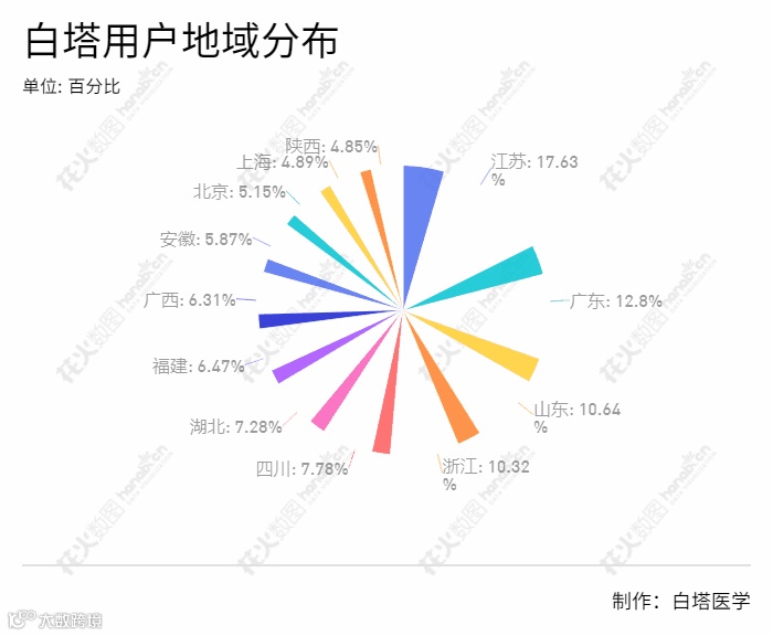 白塔数据®的用户中,江苏的老师们占比最高为11.17%,广东和山东的老师们分别占据第二、第三位,分别为8.11%和6.74%,看来江苏的老师们科研压力更大一点
