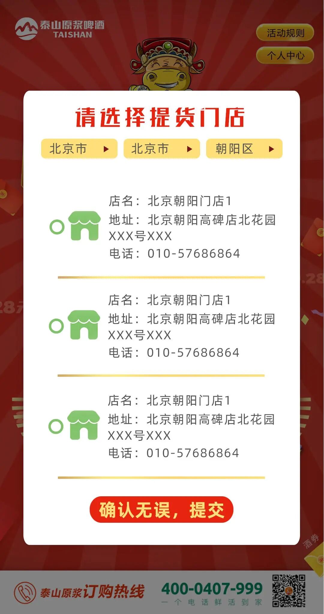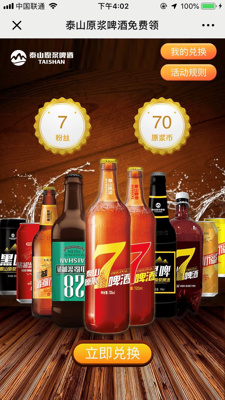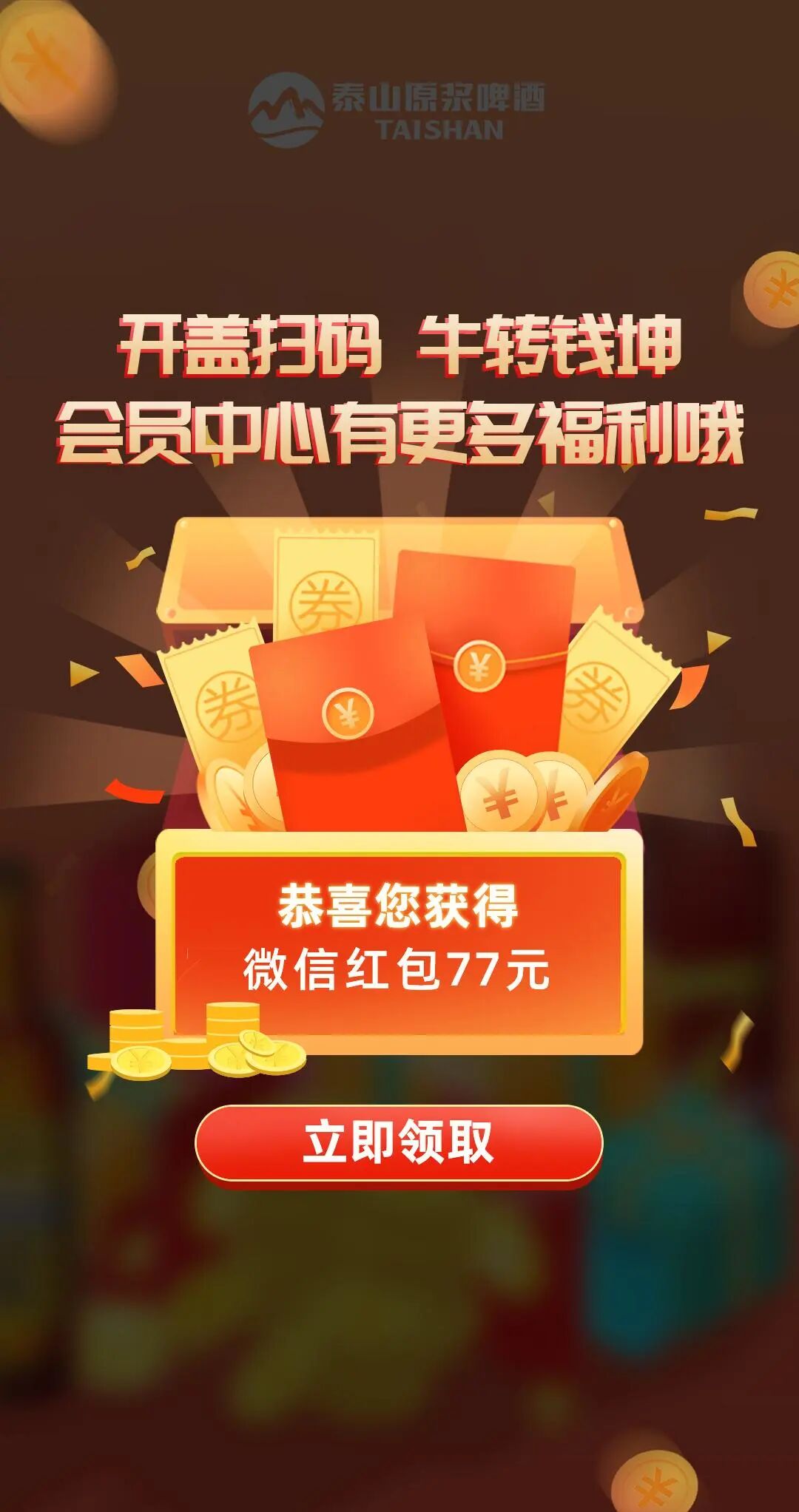 在活动上,泰山啤酒除了通过微信现金红包,实物大奖刺激消费者购买,还利用了优惠券,及到店领取的奖品,引导消费者进入线下门店,创造更多的销售机会。