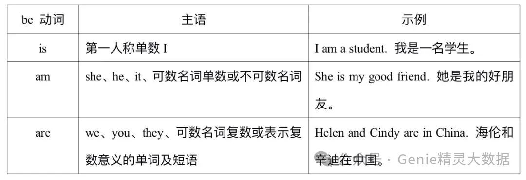 一般现在时中be动词的用法