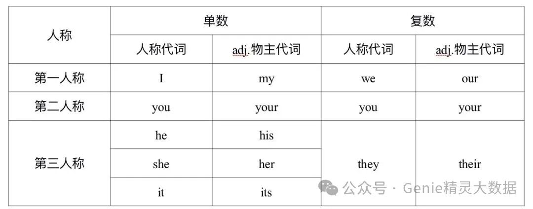 1. 人称代词和形容词性物主代词的对应关系
