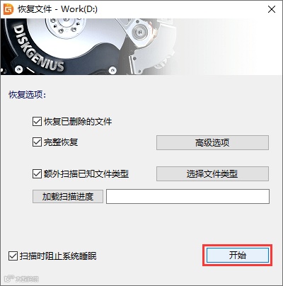 第二步:点击“开始”按钮,程序开始扫描硬盘。硬盘容量、自身速度、坏道情况、接口等因素决定了扫描所需时间,耐心等扫描结束。