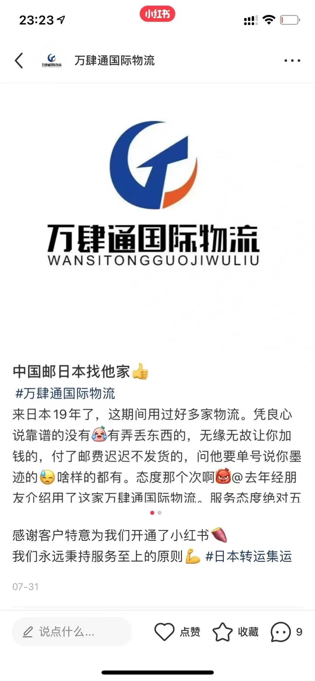 2.收货晒图+内容@万肆通国际物流到小红书领取20现金红包