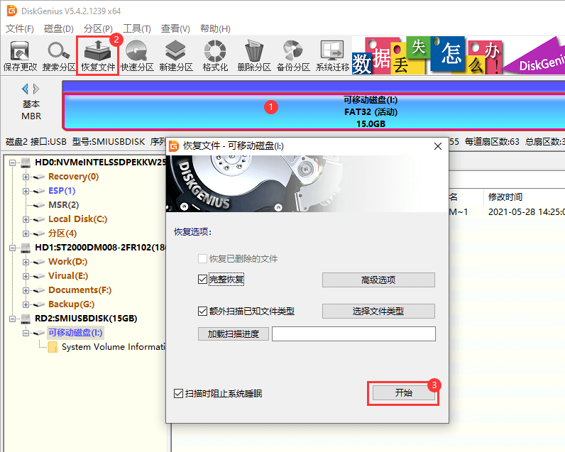 怎样恢复SD卡误删除的视频文件?使用DiskGenius数据恢复软件,只需四个简单的步骤就把可以丢失的视频、照片等数据找回来。具体操作步骤如下: