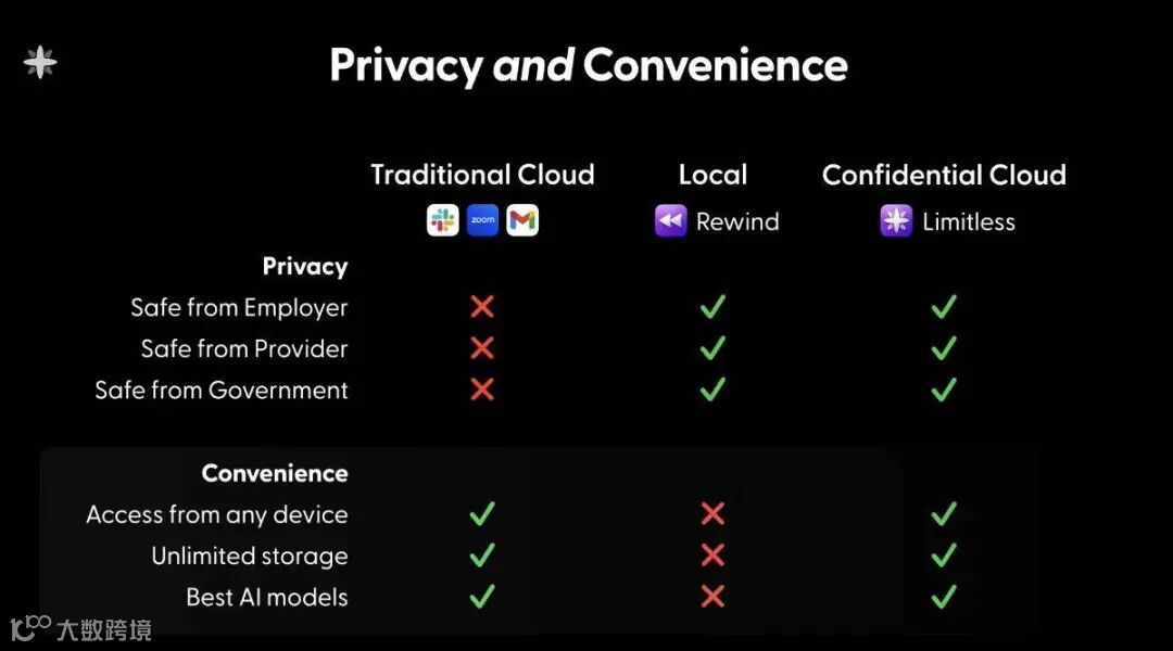 在数据隐私方面,Limitless 强调用户需同意更新后的隐私政策和服务条款。用户可随时在应用内导出或删除全部个人数据。