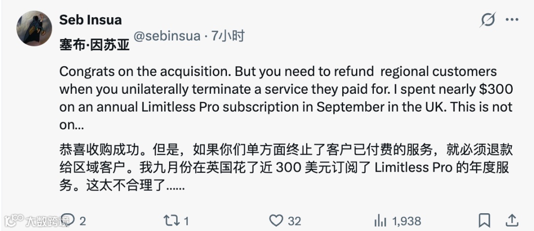 然而,面对高昂的研发成本、复杂的供应链以及漫长的市场教育周期,即便产品定位精准,初创企业仍难以独立生存。Limitless 的结局再次印证 AI 硬件领域的残酷法则:要么成长为巨头,要么被巨头收购。