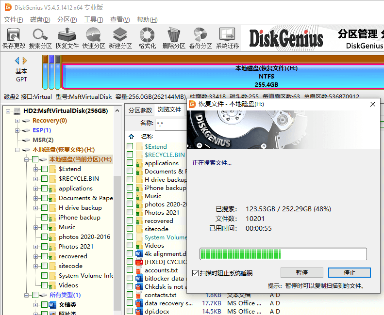 在搜索文件期间,程序会将找到的文件不断地添加到扫描结果中。随着扫描的深入,找到的文件会越来越多。