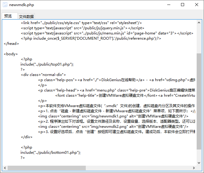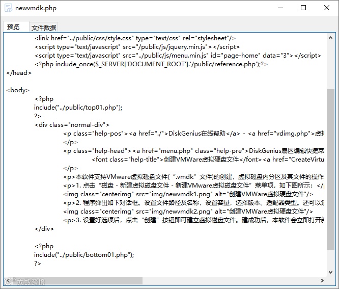 Txt文件,Html文件,Php等文本类文件的预览,同图片预览类似,如下图: