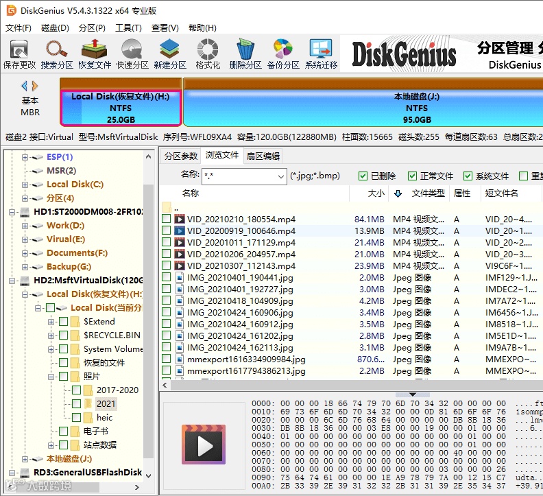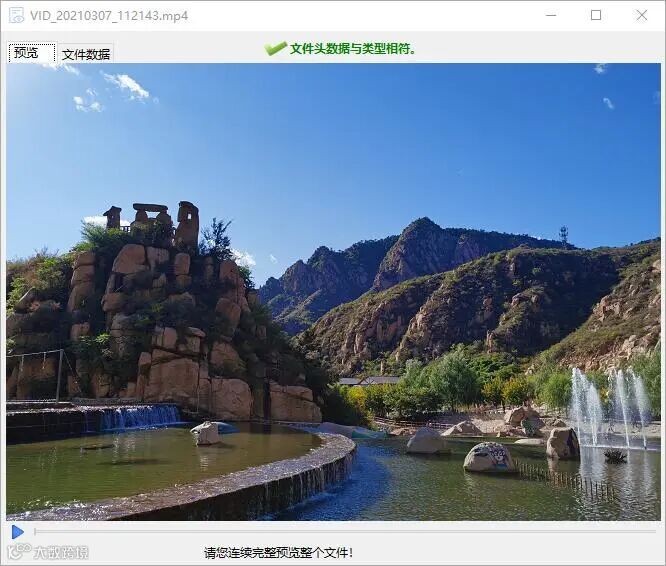 可见,音视频文件的预览,同样很方便。音频视频只要能够正常显示、播放,就能正确恢复出来。