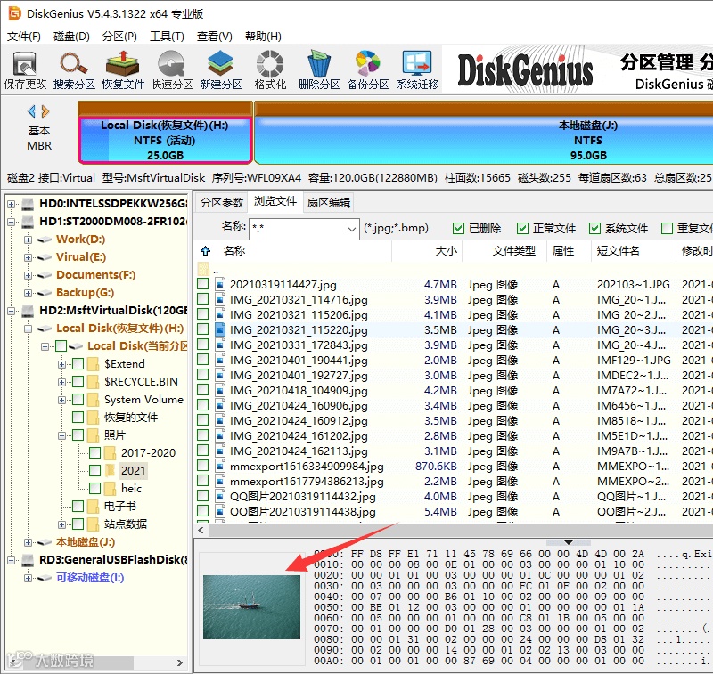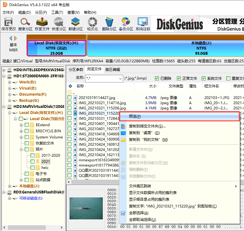 综上,使用DiskGenius预览文件的方法非常简单、直观,如果图片文件能够正确预览,就能够正确恢复出来。