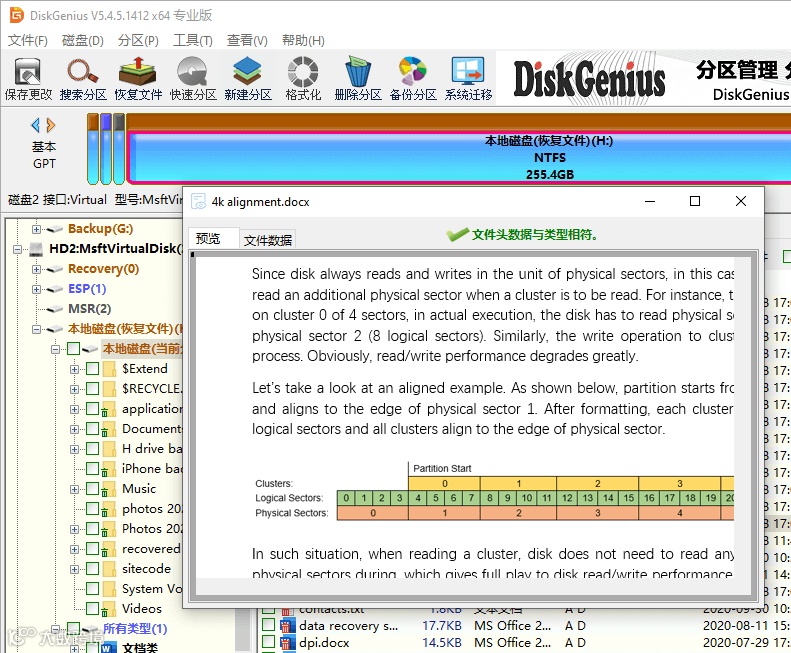 文件恢复工具哪个好用?因误删除、格式化、磁盘无法访问、分区丢失或是其他意外情况丢失了重要文件,可以使用DiskGenius这个工具来进行文件恢复。这款文件恢复工具支持读取本地硬盘、移动硬盘、U盘、存储卡、虚拟磁盘、存储池、RAID磁盘阵列、动态磁盘等存储介质,支持NTFS、FAT32、exFAT、EXT4、EXT3、EXT2等磁盘格式。恢复数据的时候,软件以只读模式扫描这些存储设备,不会对原始数据产生负面影响,非常安全,即便是新手用户,也可以放心使用。