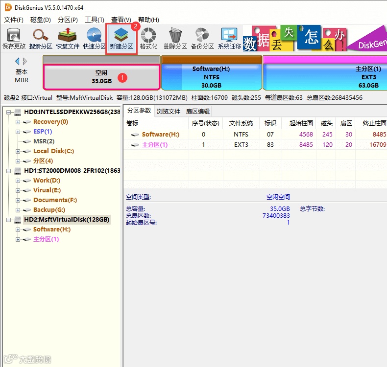 下面演示如何使用DiskGenius免费版克隆Ext4分区: