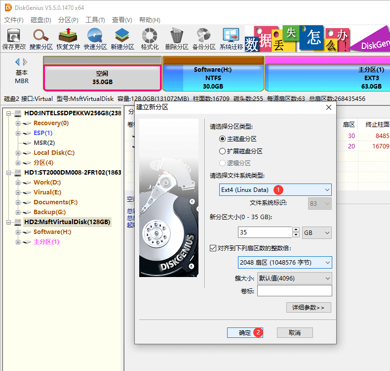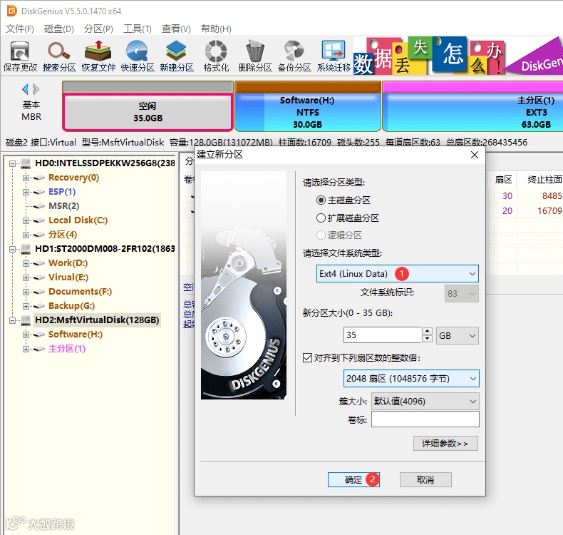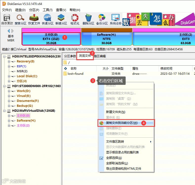 DiskGenius支持对Ext4/3/2分区的读写操作,使用该软件可以向Ext4/3/2分区写入数据,具体操作如下: