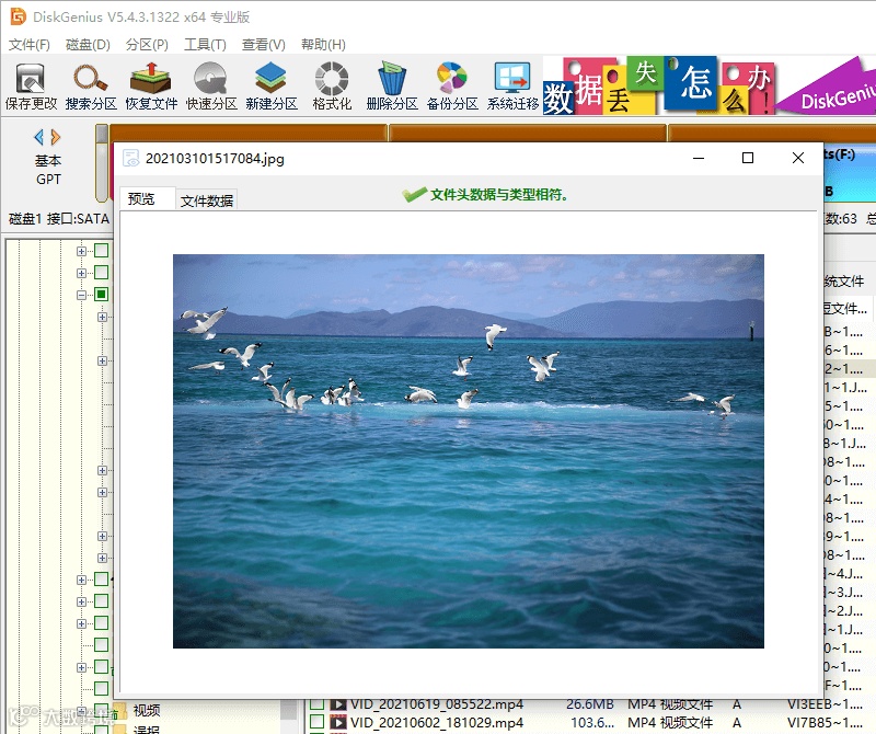 第四步:确认文件没有问题了,并把文件复制保存到其他分区或硬盘,完成恢复。