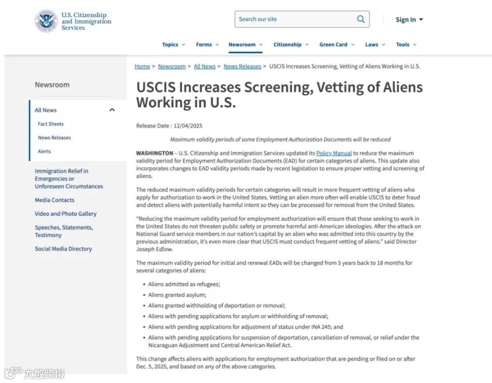 Edlow强调:“USCIS正在重新聚焦对外籍人士的严格筛查,纠正前任政府过度便利化、忽视本土安全的做法。在美国工作是特权,而非权利。”
