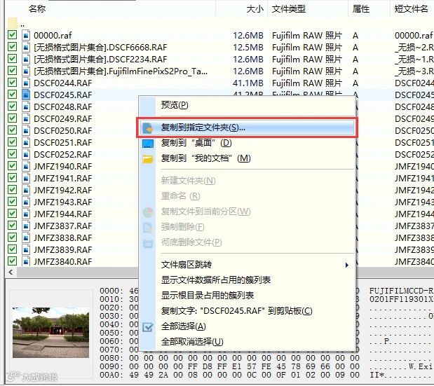 第四步:勾选想要恢复的照片,然后把照片复制保存到不恢复数据的电脑硬盘或其他储存设备中,完成照片恢复任务。