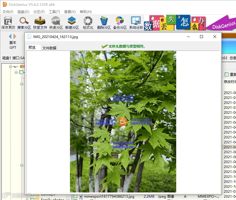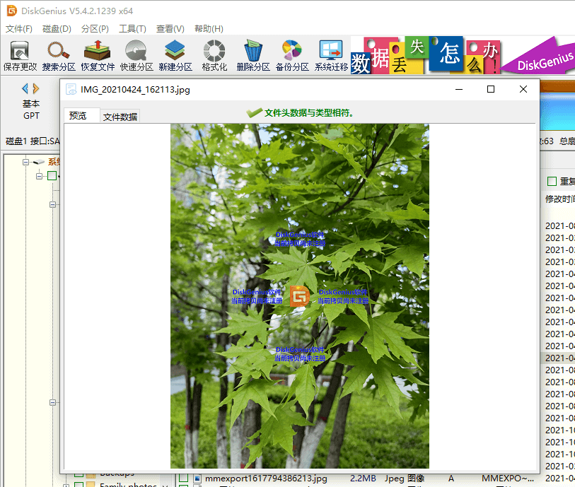 电脑丢失的照片还能恢复吗?照片丢失后如果没有被覆盖,就有希望恢复。常用的方法是使用照片恢复软件DiskGenius进行恢复。该软件照片恢复算法十分强大,支持恢复电脑硬盘、虚拟磁盘、RAID磁盘阵列、Windows存储池以及各种外接设备上丢失的照片、视频、音频、文档等。支持多种照片格式的深度扫描,例如,JPG、DNG、CRW、CR3、HECI、RAF、RAW等。此外,该软件的数据恢复功能操作十分简单,没有经验的用户也能够很快掌握操作要领。电脑照片恢复图文教程如下: