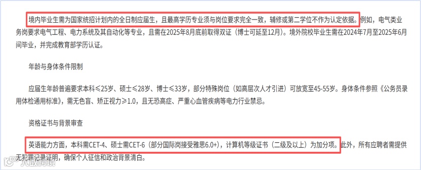 例如,南方电网明确要求提供英语六级、雅思或托福成绩,海外留学生凭借语言能力通过率显著高于同龄人。一年制硕士只要通过教育部留学服务中心认证,在国央企招聘中与国内全日制硕士同等对待。