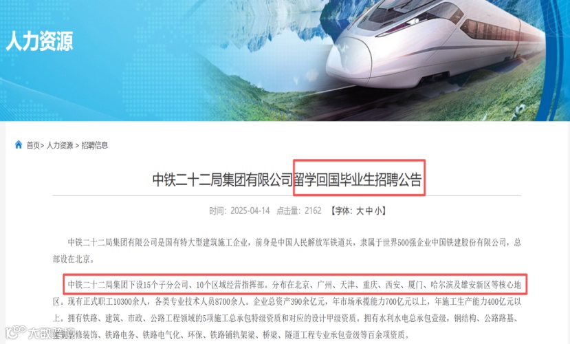 与此同时,国企央企加速全球化布局,对具备外语能力、熟悉国际规则的复合型人才需求迫切。中铁二十二局开设留学生专项通道,国家能源建设集团设立高层次人才“绿色通道”,多家银行推出留学生专属招聘计划,相当于为海归群体提供优先入场机会。
