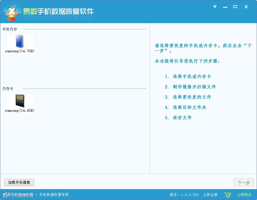 第一步:将手机与电脑连接好,然后在电脑中安装并运行易数手机数据恢复软件。