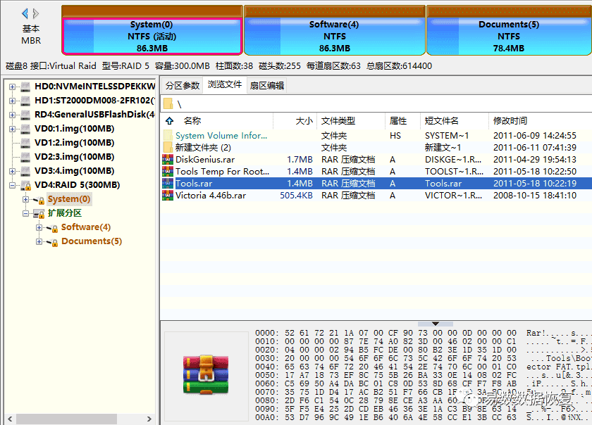 虚拟RAID组建成功后,在软件中就可以像操作普通硬盘一样来操作这个虚拟RAID 了。如果可以直接看到丢失的数据,将数据复制到其他的盘即可。