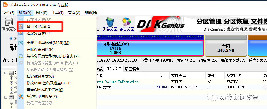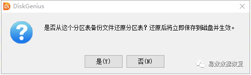 程序显示下面的提示,表示备份分区表成功。请妥善保管分区表备份文件。以便在必要时还原。
