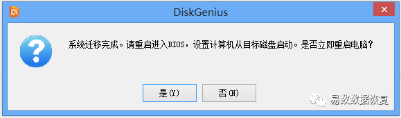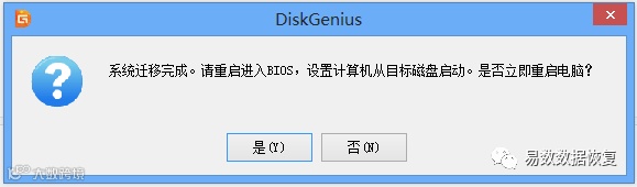 完成系统迁移后,DiskGenius软件会给出系统迁移完成的提示,如下图: