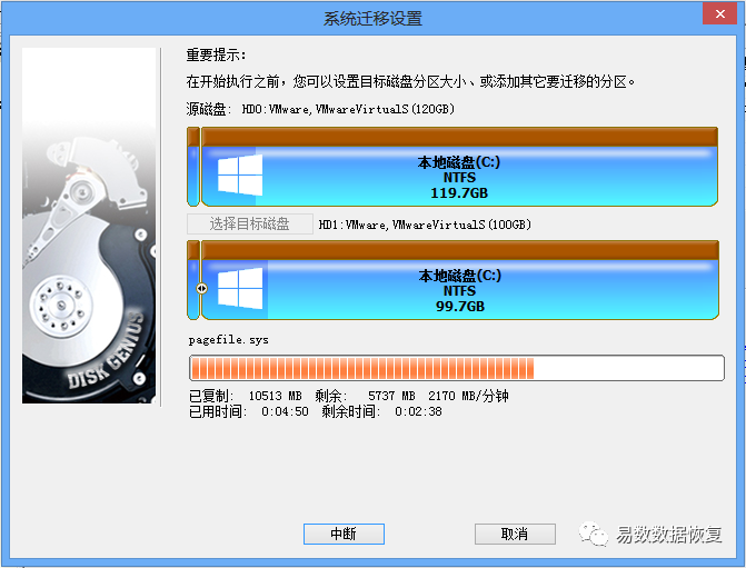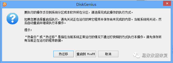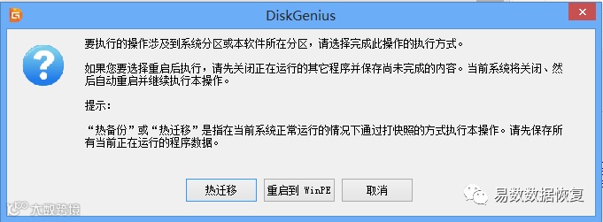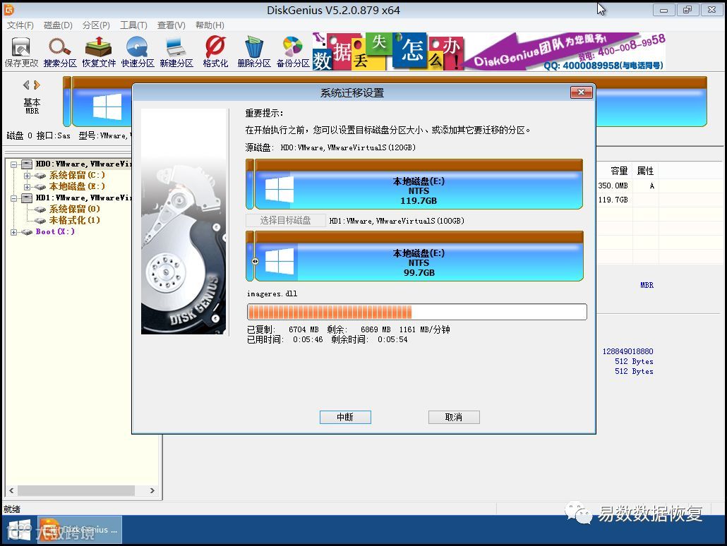 点击“热迁移”按钮,DiskGenius将开始热迁移操作,如下图: