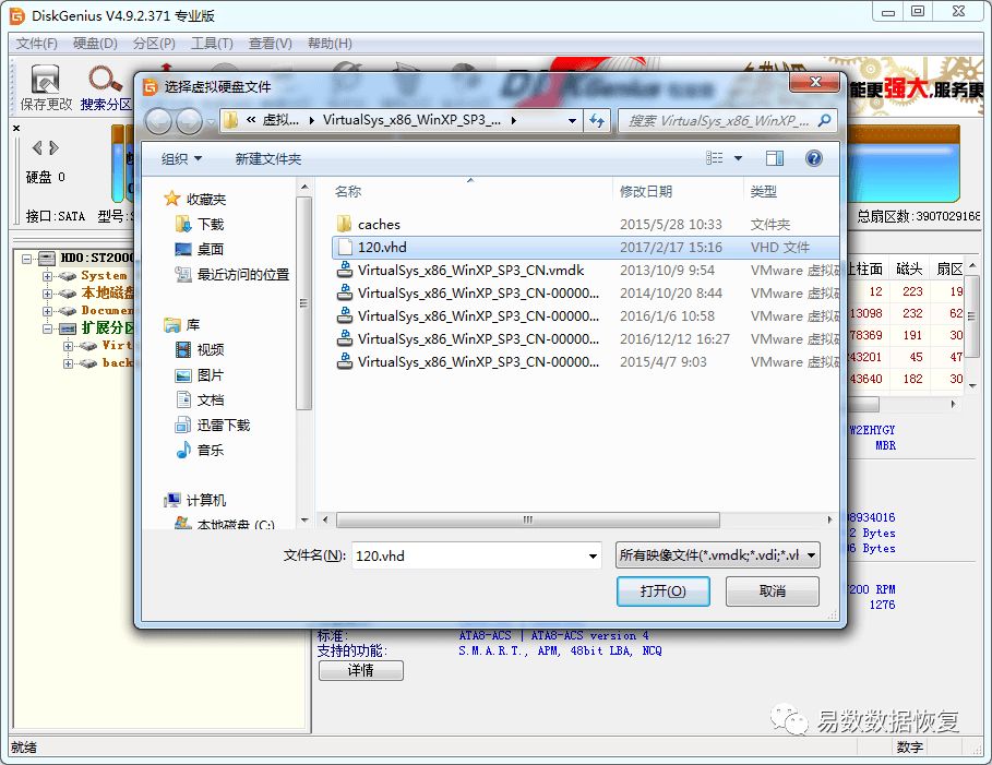 在电脑中找到并选中想要转换格式的虚拟磁盘,然后点击“打开”按钮。