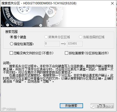 如果不是整个硬盘的所有分区都丢失了,就不必执行全盘搜索,只需搜索已丢失分区原来所在的区域,这样可以节省搜索的时间。