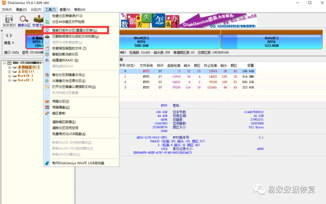 不要什么原因造成的数据丢失都用DiskGenius的“重建分区表”功能(就是搜索已丢失分区功能)来修复。这个功能虽然强大,但也有它特定的适用范围。它只适用于分区丢失的情况。如果分区还在,只是文件丢失了,或提示分区未格式化了,用这个功能是无济于事的。反而如果在未搜索到正确的分区的情况下执行了“保存分区表”命令,还会造成更大损失。