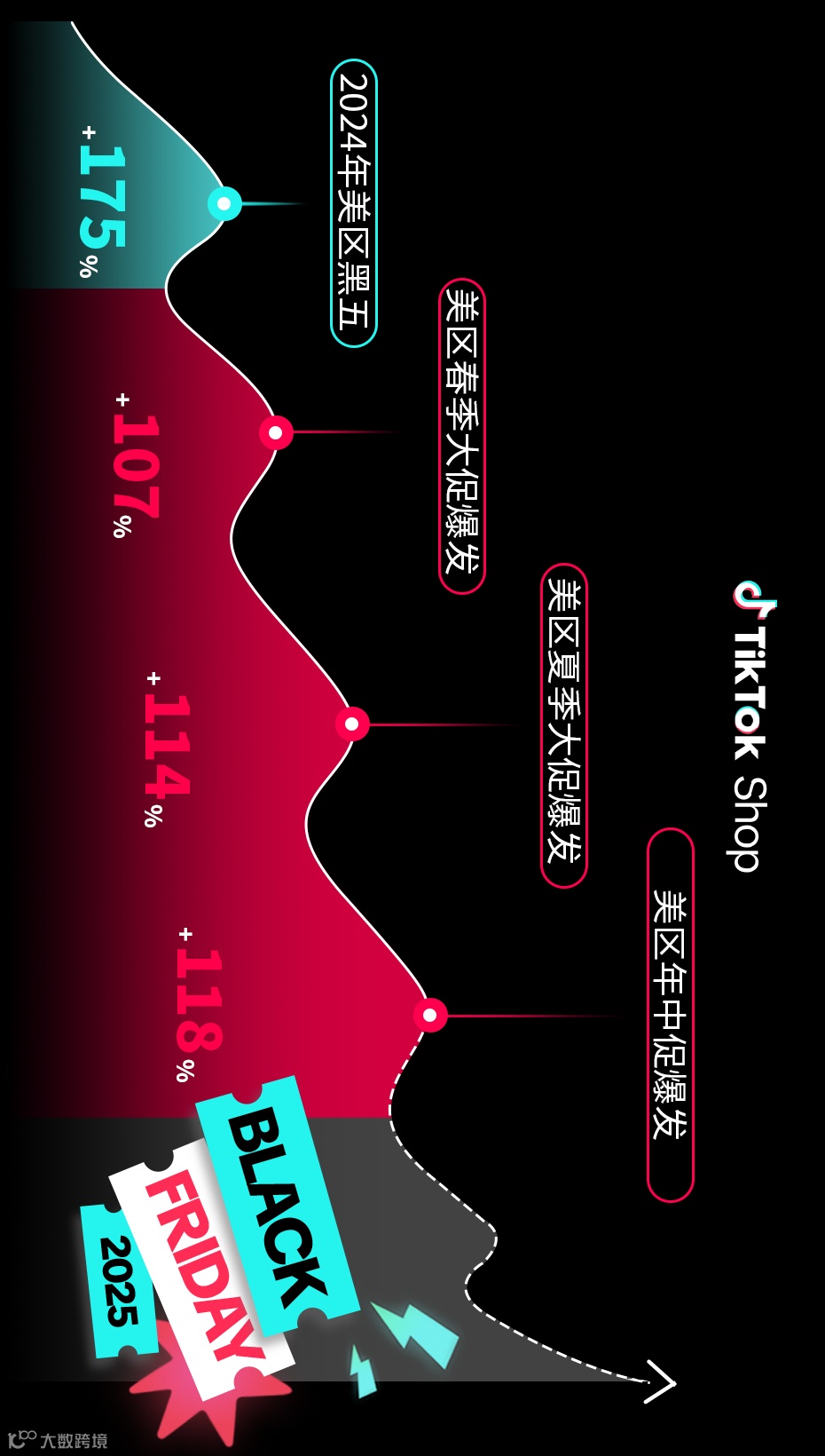 2024年TikTok Shop美区黑五当天GMV破1亿美金,活动期间商家生意爆发强劲。继去年黑五取得亮眼成绩,2025年多场大促GMV节节高,持续刷新各项记录,也将助推今年黑五迎来年度巅峰爆发。