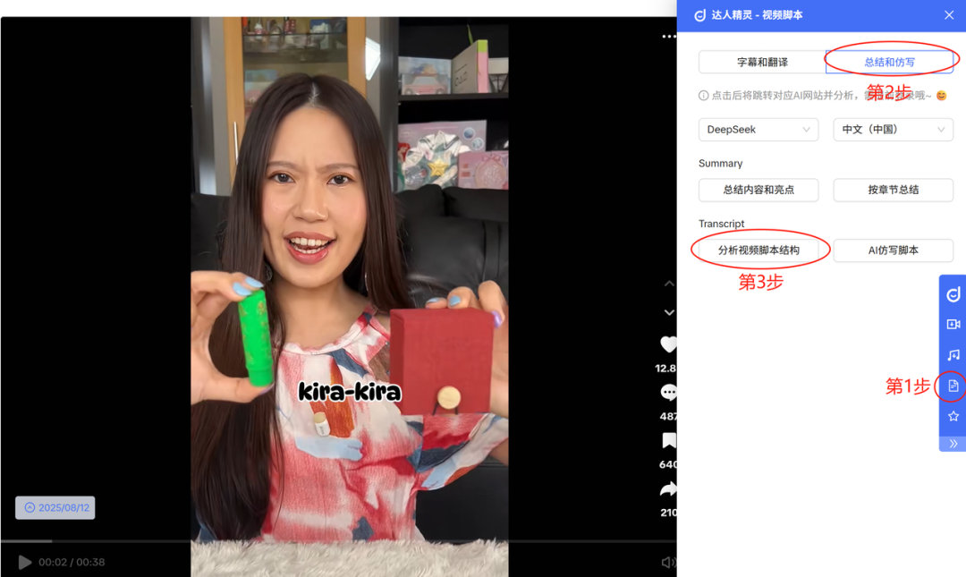 自动拆爆款 7 大 AI 模型(DeepSeek、ChatGPT 等)随时供你调用,找到对标爆款,点击一下,视频前 3 秒钩子类型、中段逻辑、结尾转化点,10秒出结果。