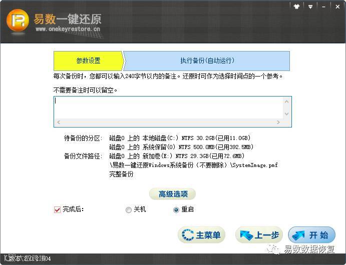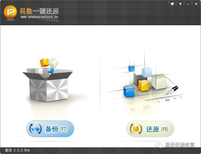 第一步:运行易数一键还原软件,在主界面点击“备份”按钮。