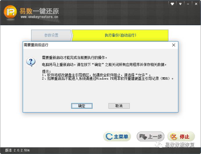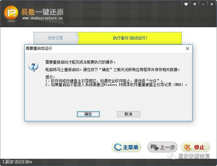 第三步:软件会提示重启电脑进入到备份模式,这时候点击“确定”按钮即可。