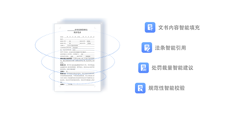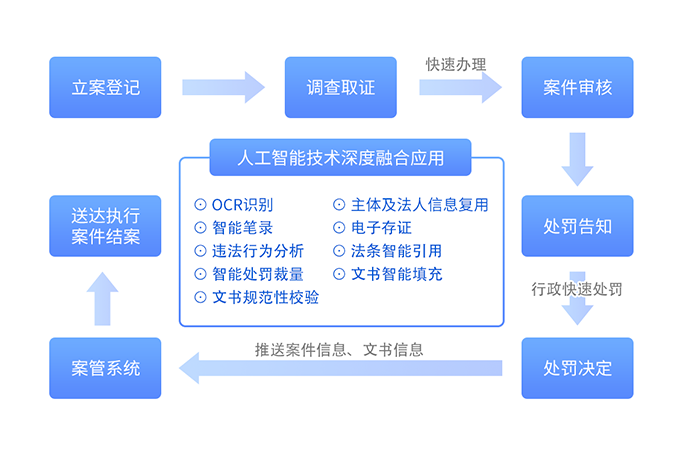 通过执法办案知识结构化技术开展违法行为分析、法条引用、智能处罚裁量、文书快速填充和文书规范性校验;